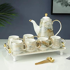 Chi Tiết Bộ Sản Phẩm: • 1 ấm trà: Dung tích 900ml. • 6 chén trà: Dung tích 170ml mỗi chén. • 1 âu đựng đường và 1 ca sữa: Dung tích 200ml mỗi món.