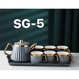 BỘ ẤM CHÉN PHA TRÀ CÀ PHÊ DÁNG THẤM MÀU GHI VIỀN VÀNGBỘ ẤM CHÉN PHA TRÀ CÀ PHÊ DÁNG THẤM MÀU GHI VIỀN VÀNG