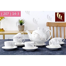 Một bộ sản phẩm bao gồm: 01 ấm, 01 đĩa ấm, 06 chén và 06 đĩa chén. Bộ sản phẩm được làm từ chất liệu gốm cao cấp, bảo đảm an toàn vệ sinh