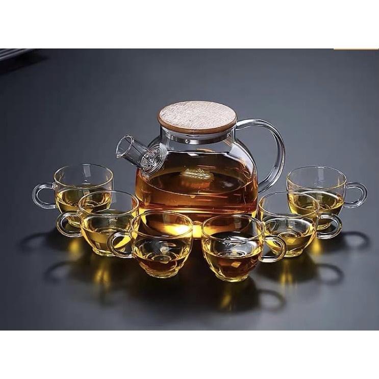✨Bộ ấm chén pha trà thủy tinh 1000ml chịu nhiệt nắp gỗ