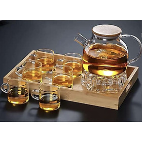 BỘ ẤM TRÀ THUỶ TINH CHỊU NHIỆT CÓ ĐẾ NẾN, BỘ ẤM CHÉN UỐNG TRÀ CAO CẤP 600ML