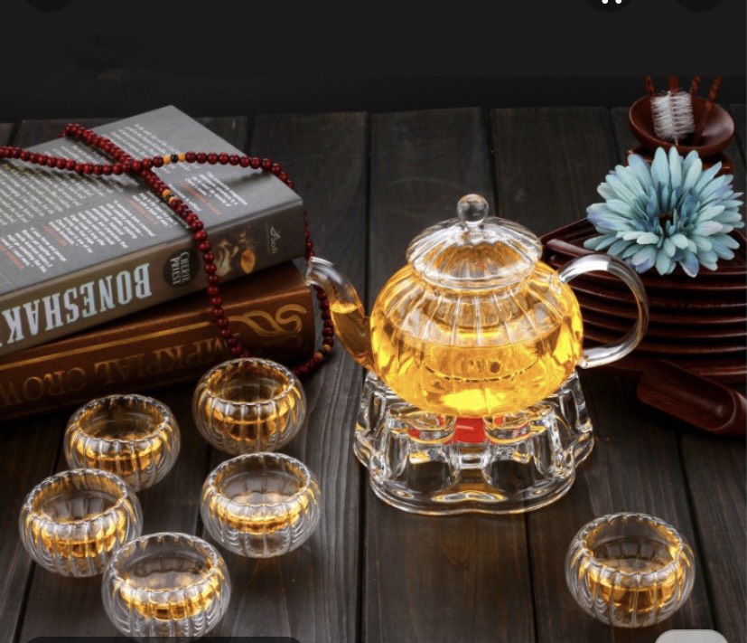 Bộ ấm chén thưởng trà là sản phẩm bộ ấm pha trà thủy tinh, sản xuất theo công nghệ Đài Loan với hệ số borosilicate cao, giúp thủy tinh có khả năng chịu nhiệt cực kỳ tốt. Đồng thời, với sự ổn định của của các nguyên liệu hóa học cấu tạo, được thử nghiệm trong môi trường nhiệt cao, chất liệu thủy tinh láng bóng, không hấp thụ hương vị trà, ấm trà thủy tinh này sẽ giúp người dùng thưởng thức trọn vẹn mùi vị trà nguyên chất và tinh khiết nhất. Màu sắc của nước trà, cánh trà, hoa trà hay lớp sương khói mờ ảo cũng được thể hiện toàn bộ bên trong lớp thủy tinh trong suốt, mang lại một cảm quan duy mĩ, cảm giác thư thái cho việc thưởng trà.
