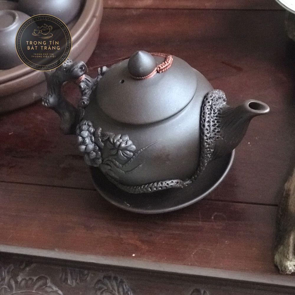 Bộ ấm trà gốm đắp tay khay chữ nhật 29 x 19cm - chuẩn loại 1 Bát Tràng + Chất liệu đất tử sa cao cấp + Sản xuất tại Bát Tràng + Bộ gồm