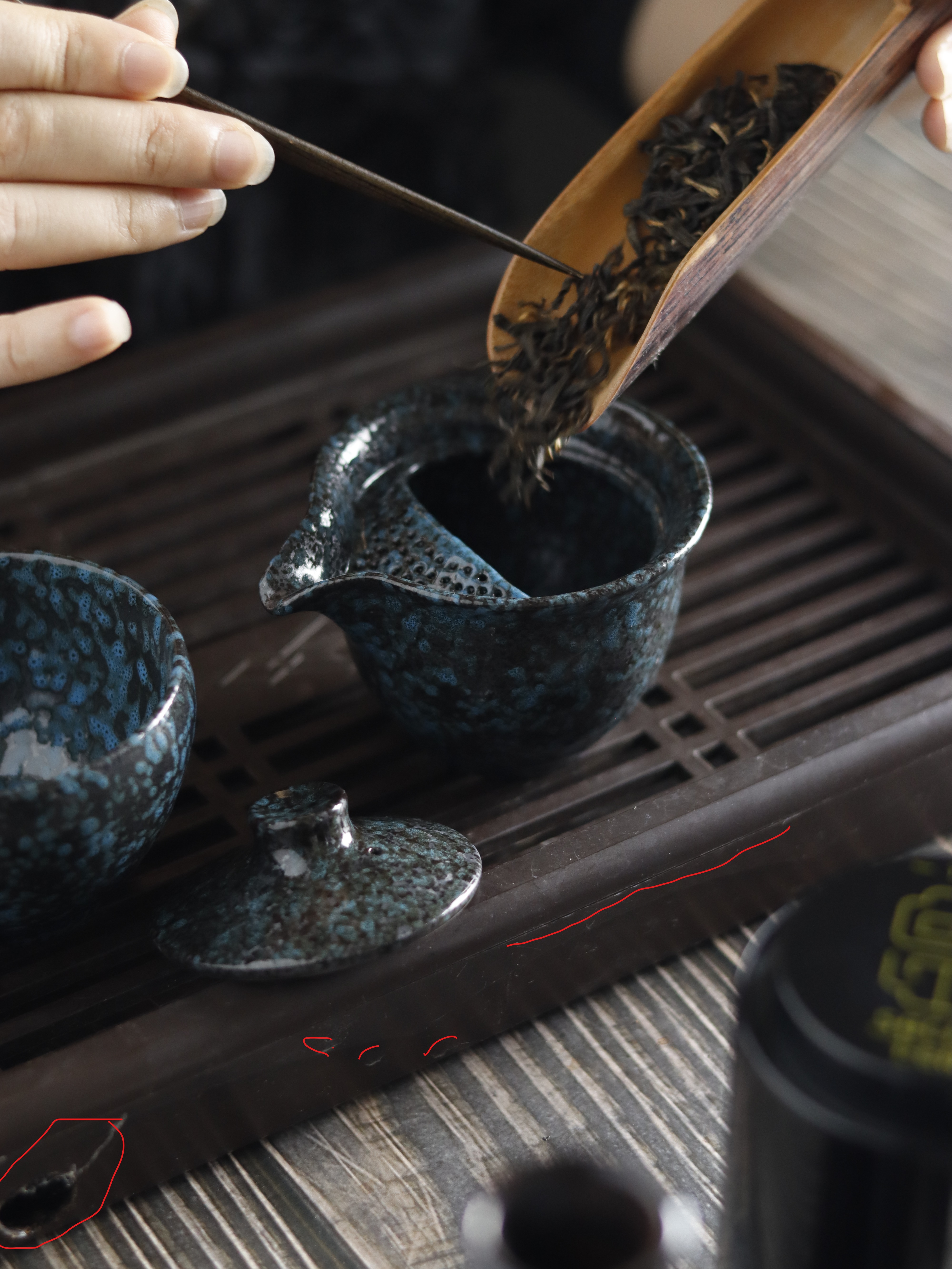 + Sau đó chắt kiệt ra chén; nghiêng nắp ấm để trà không bị nồng.