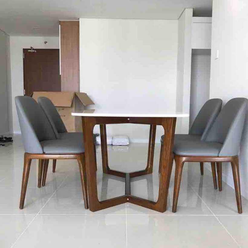 Mẫu Bộ bàn ăn gỗ MẶT ĐÁ 4 ghế kết hợp nệm Tuyệt đẹp