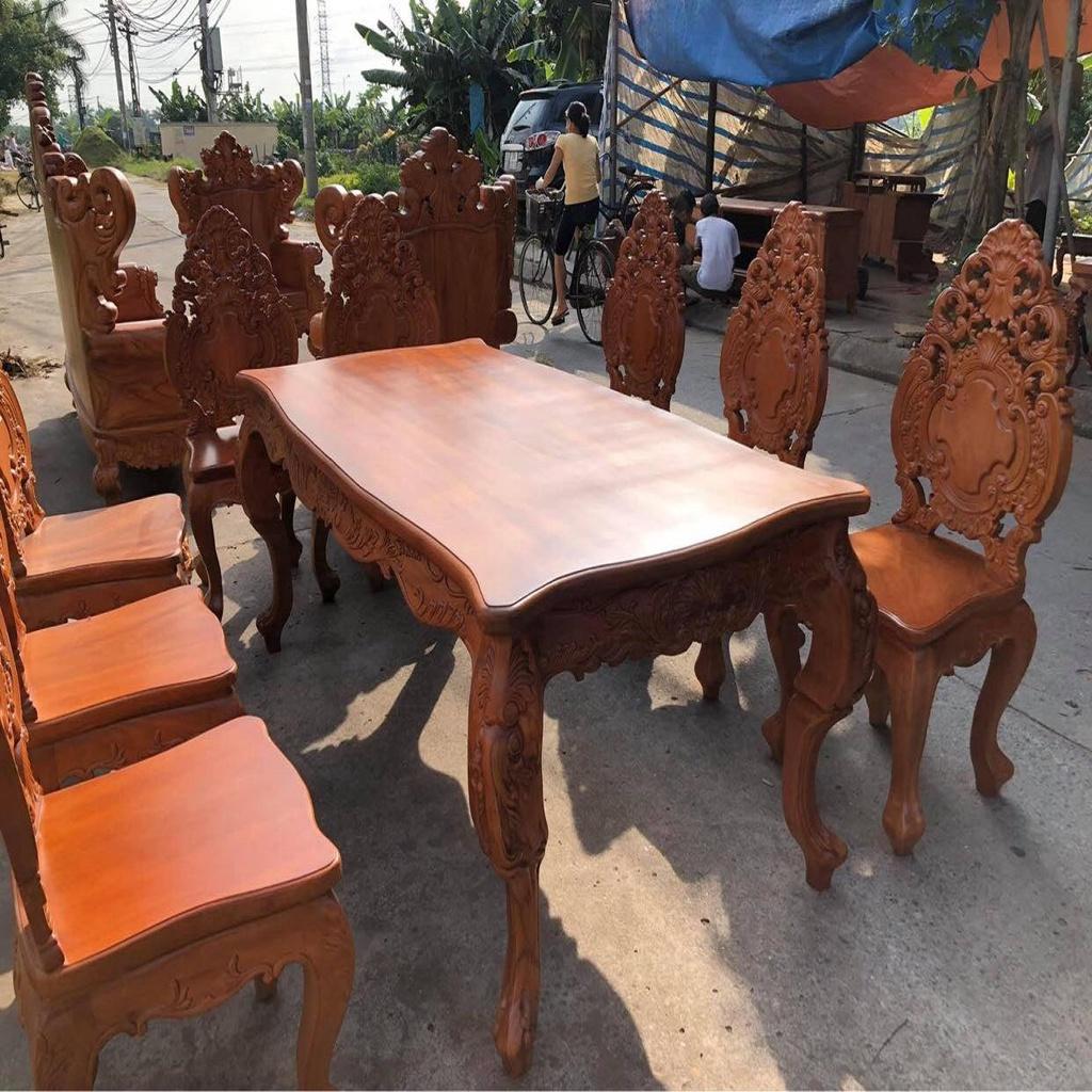 ✨Bộ Bàn Ăn Louis Hoàng Gia Ván Tràn 8 Ghế Liền Vách Gỗ Gõ Đỏ
