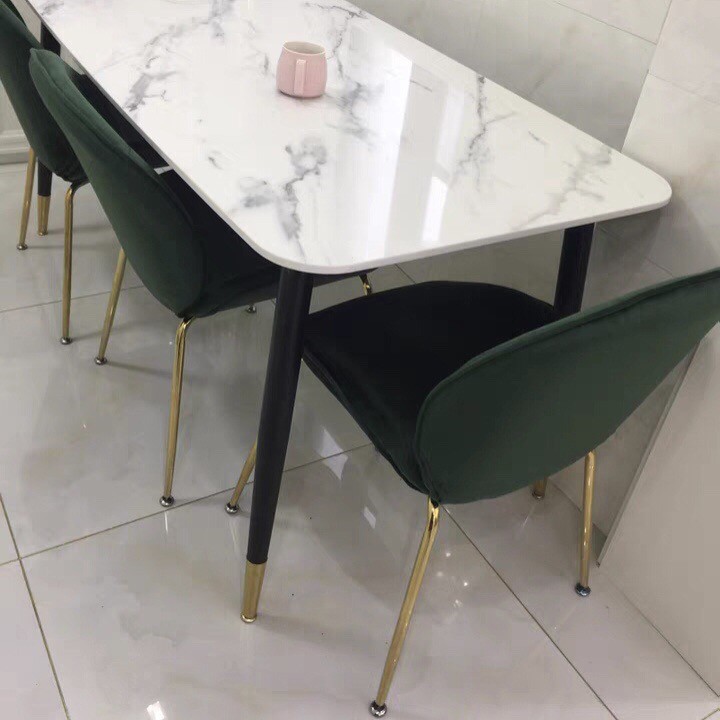 ✨Bộ bàn ăn mặt đá cẩm thạch nhân tạo kết hợp ghế Gubi chân sắt mạ vàng