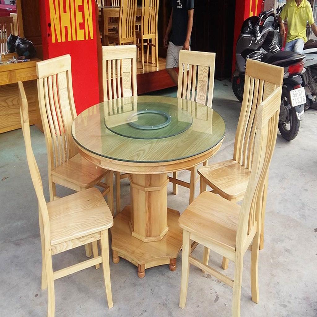Hình ảnh thực tế Bàn ăn tròn xoay 6 ghế gỗ sồi Nga BA03