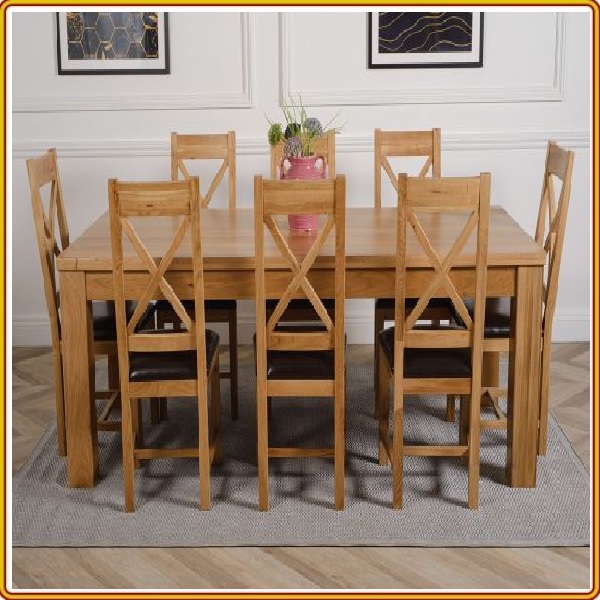 được làm từ gỗ sồi sang trọng theo phong cách Âu - Mỹ. Bàn ăn hình oval có thể kéo dài và thu gọn phù hợp cho việc tiếp đãi Khách đến nhà chơi. Bộ