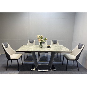Bộ bàn ăn mặt đá Ceramic bóng kết hợp 4 ghế 6 ghế Nelson