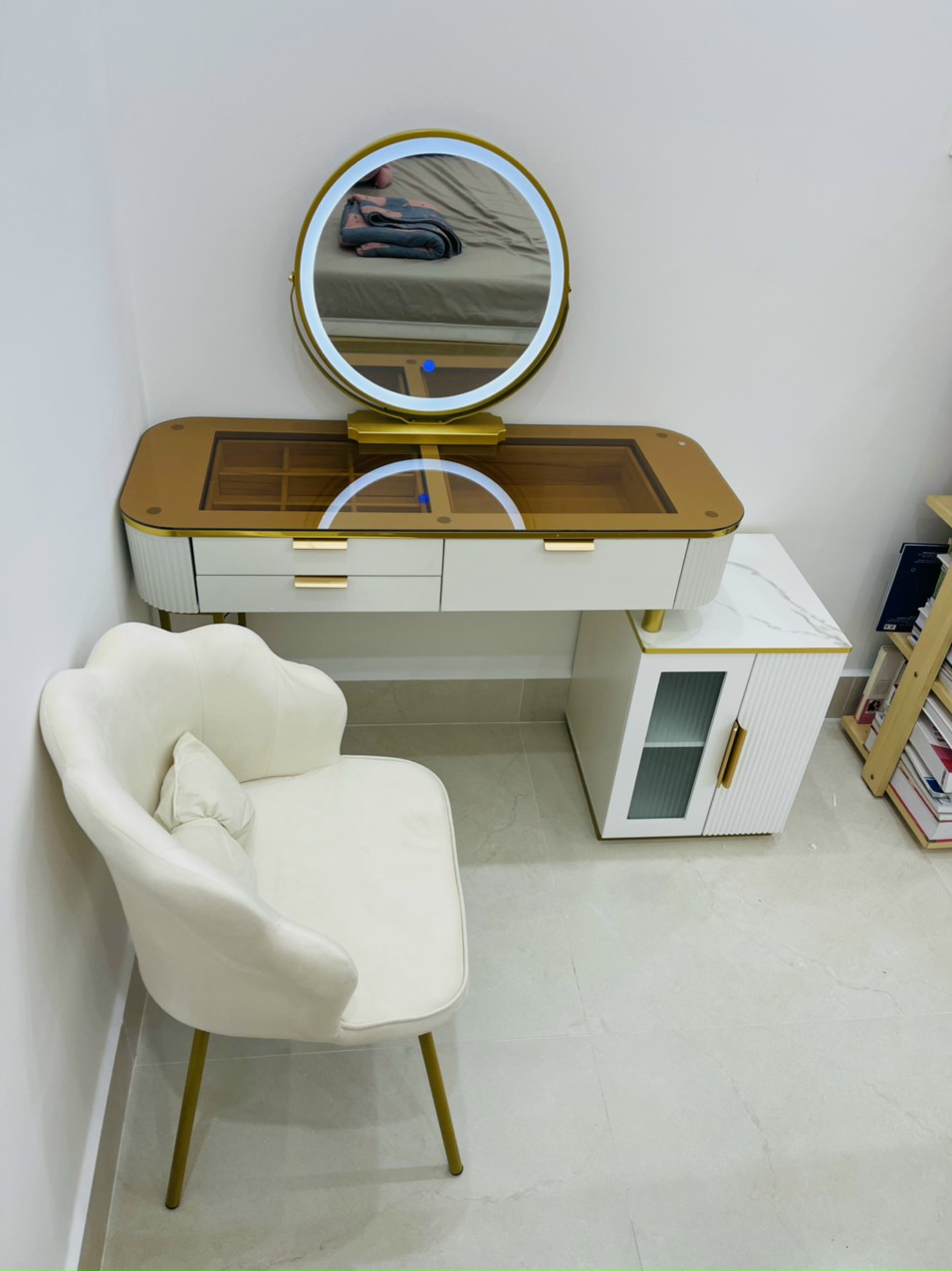 Bàn trang điểm sang trọng hiện đại - Kích thước: Dài 1m x rộng 40cm x cao 75cm - Thanh lịch, thu hút, thời thượng là những tính từ miêu tả chính xác nhất về