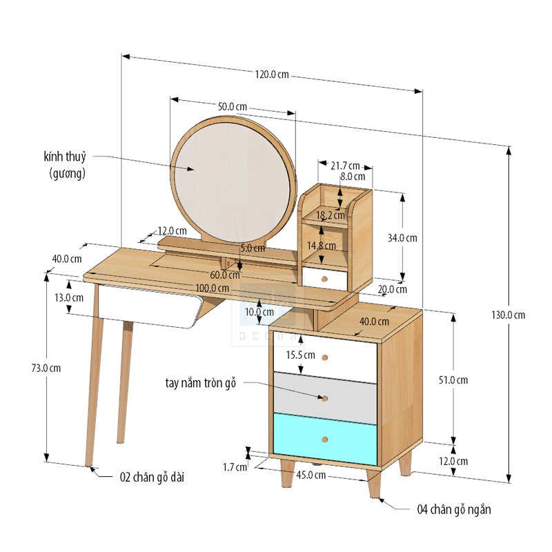 - Kích thước tổng thể: 120 x 40 x 130cm (Dài x Rộng x Cao).