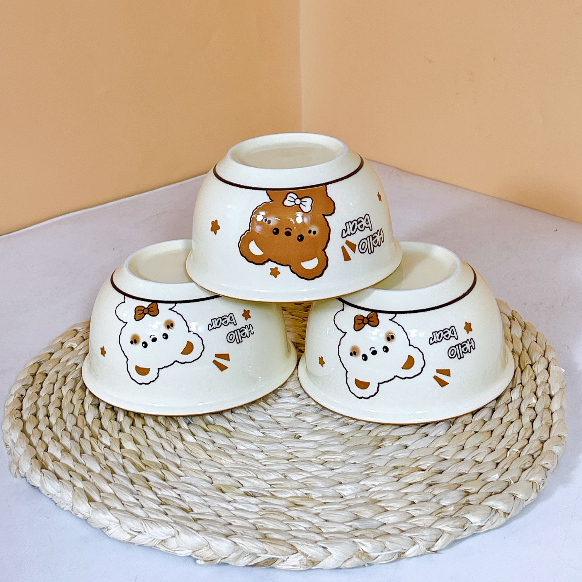 ✨Bộ Bát Đĩa Gốm Sứ Cao Cấp Gosu Hình Gấu Cam Trắng Đáng Yêu