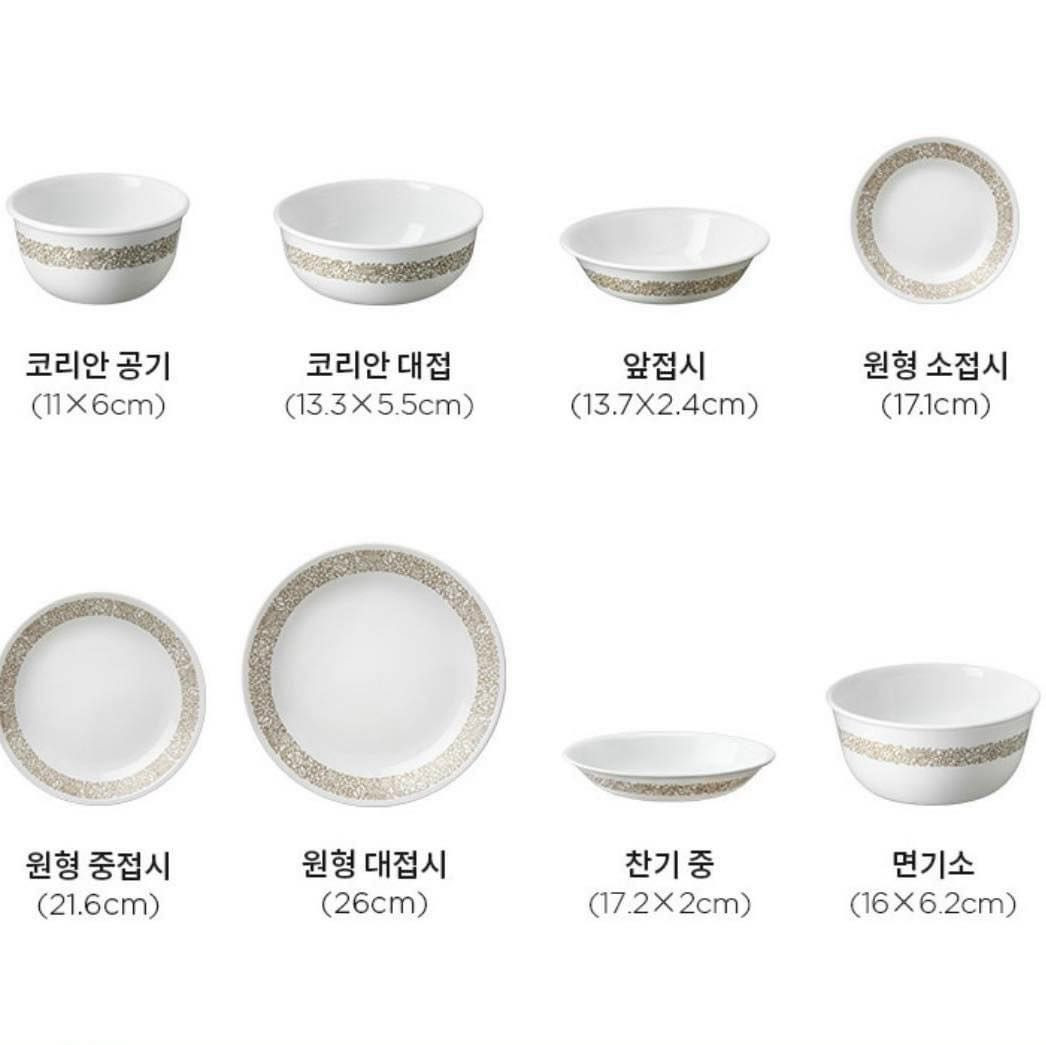 THÀNH PHẦN BỘ BÁT SỨ 34 MÓN CORELE: 2 đĩa nông lòng đường kính 26cm 2 đĩa nông lòng đường kính 21,6cm 4 đĩa nông lòng đường kính 17,1cm 2 đĩa sâu lòng đường kính 17,2cm sâu 2cm 4 đĩa sâu đường kính 13,7cm, cao 2,4cm 10 bát cơm đường kính 11cm, cao 6cm 5 bát tô đường kính 16cm, cao 6,2cm 5 bát nhỡ thấp đường kính 13,3cm , cao 5,5cm