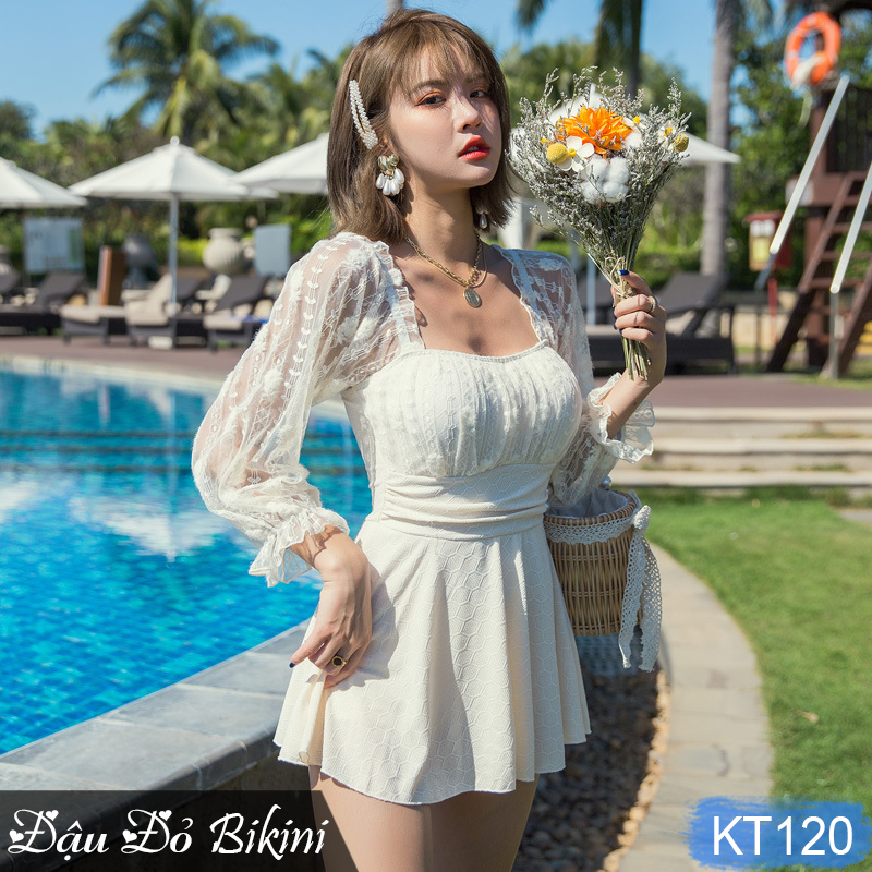 ✨Bộ bơi nữ tay ren gợi cảm, có size đại cho người béo mập, bigsize đến 95kg, phom chuẩn đẹp tôn dáng dấu bụng tốt | KT120