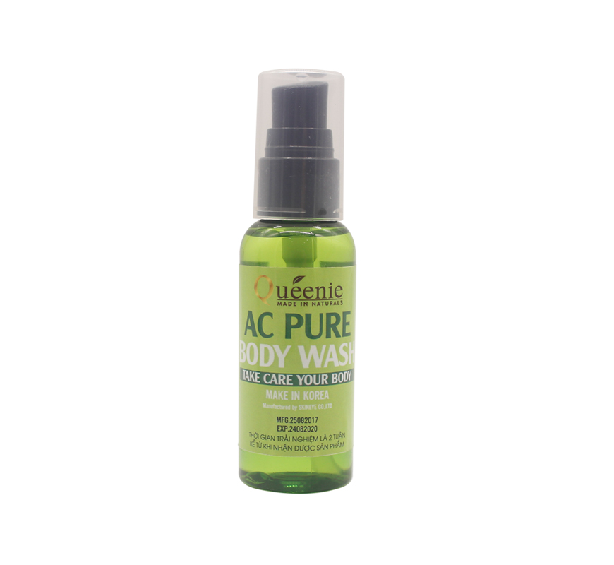 - Loại bỏ và phục hồi vùng da bị mụn ở vùng ngực, vai, lưng. Thành phần: cam thảo, tinh dầu hồi, tinh dầu bưởi, lavender, cao khô vỏ cây liễu trắng, Hướng dẫn sử dụng bộ chăm sóc cơ thể thảo dược Queenie: Tắm sạch cơ thể với sữa tắm thảo dược Queenie. Sau đó lấy một lượng sữa dưỡng thể vừa đủ, thoa kem đều lên toàn bộ cơ thể để cung cấp độ ẩm cho da, giúp da được mịn màng và thư giãn. Hướng dẫn bảo quản: