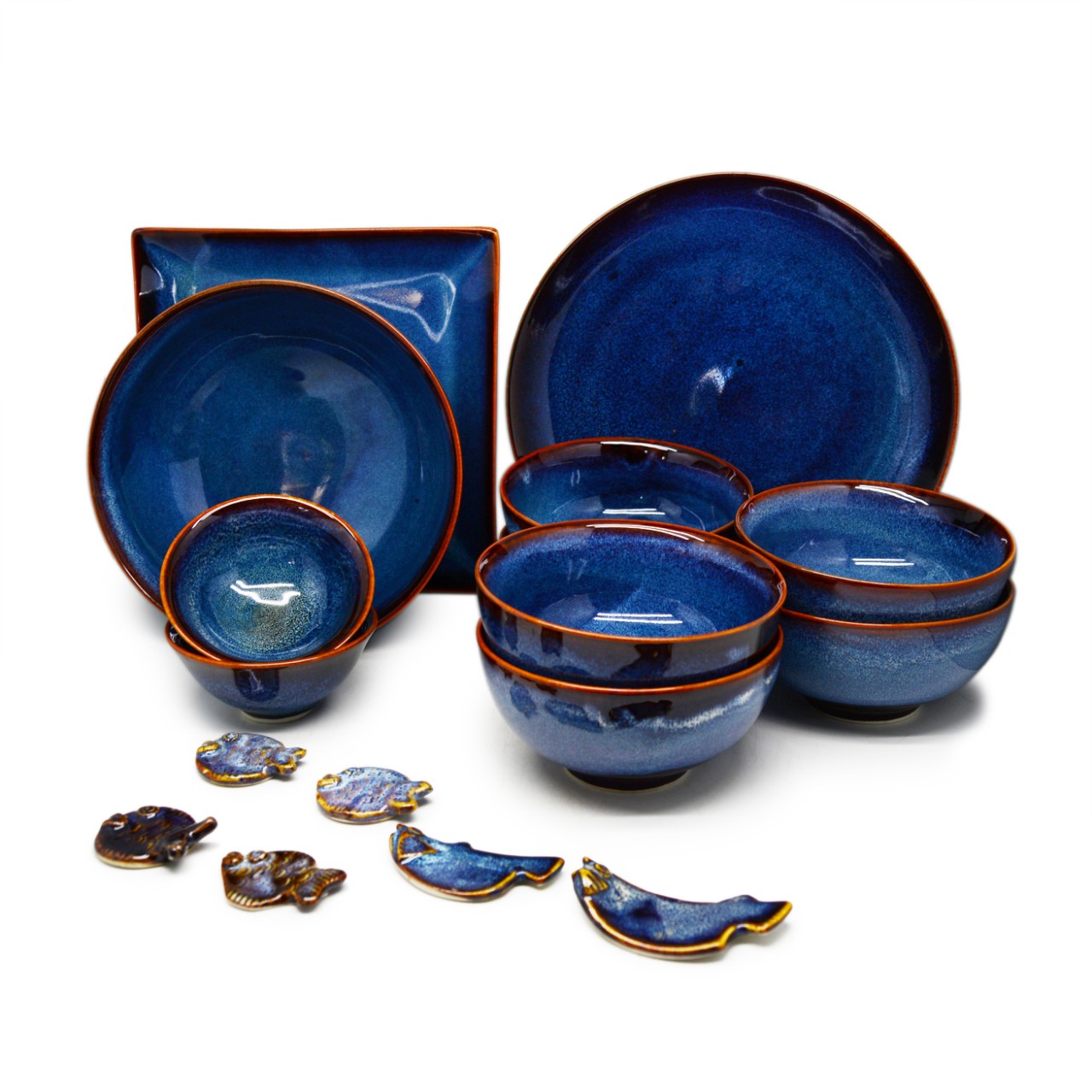 ✨Bộ chén đĩa sứ cao cấp Đông Gia 06 món VS2-màu men hỏa biến tự nhiên xanh sóng biển 8094.