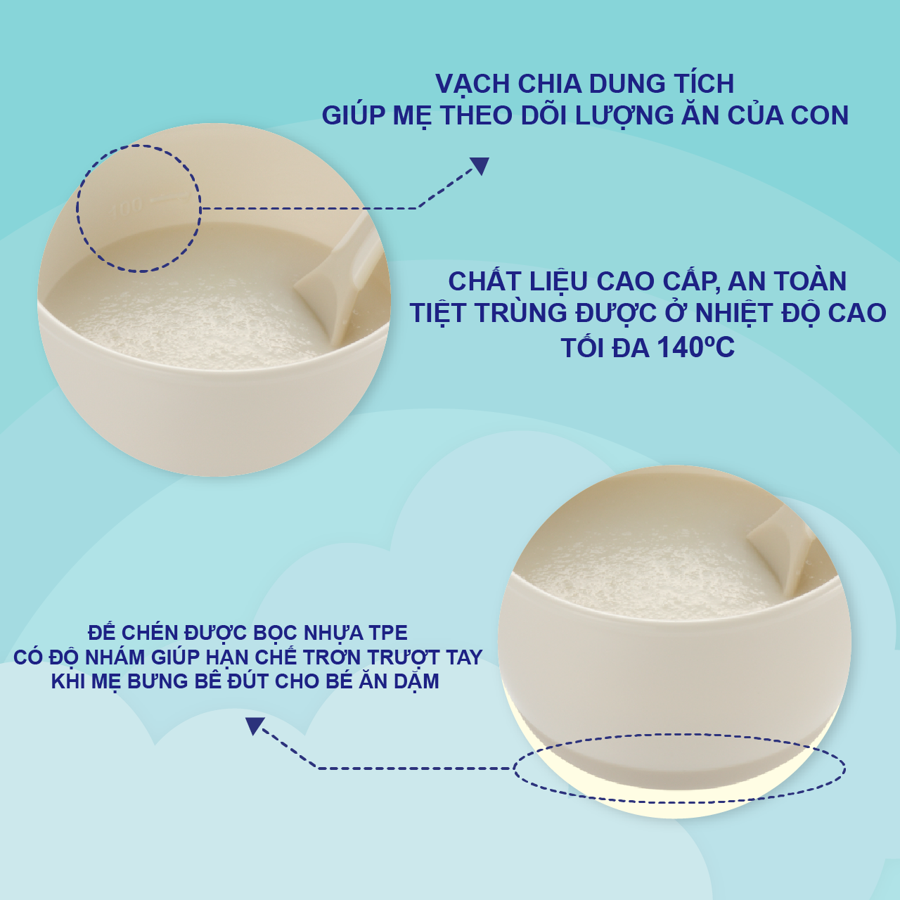Chén có vạch chia ml, thuận tiện cho ba mẹ theo dõi khẩu phần ăn của bé.