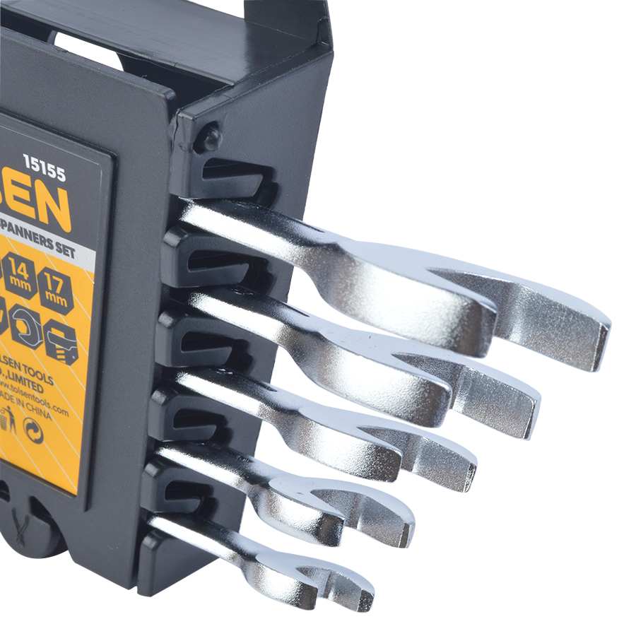 Bộ Chìa Khóa Vòng Miệng 5 Món Tolsen 15155 được làm từ chất liệu thép Chrome Vanadium sáng bóng với độ bền cao cùng khả năng chống gỉ sét tốt, không bị oxy hóa hay mài mòn dù phải tiếp xúc thường xuyên với điều kiện ẩm ướt.