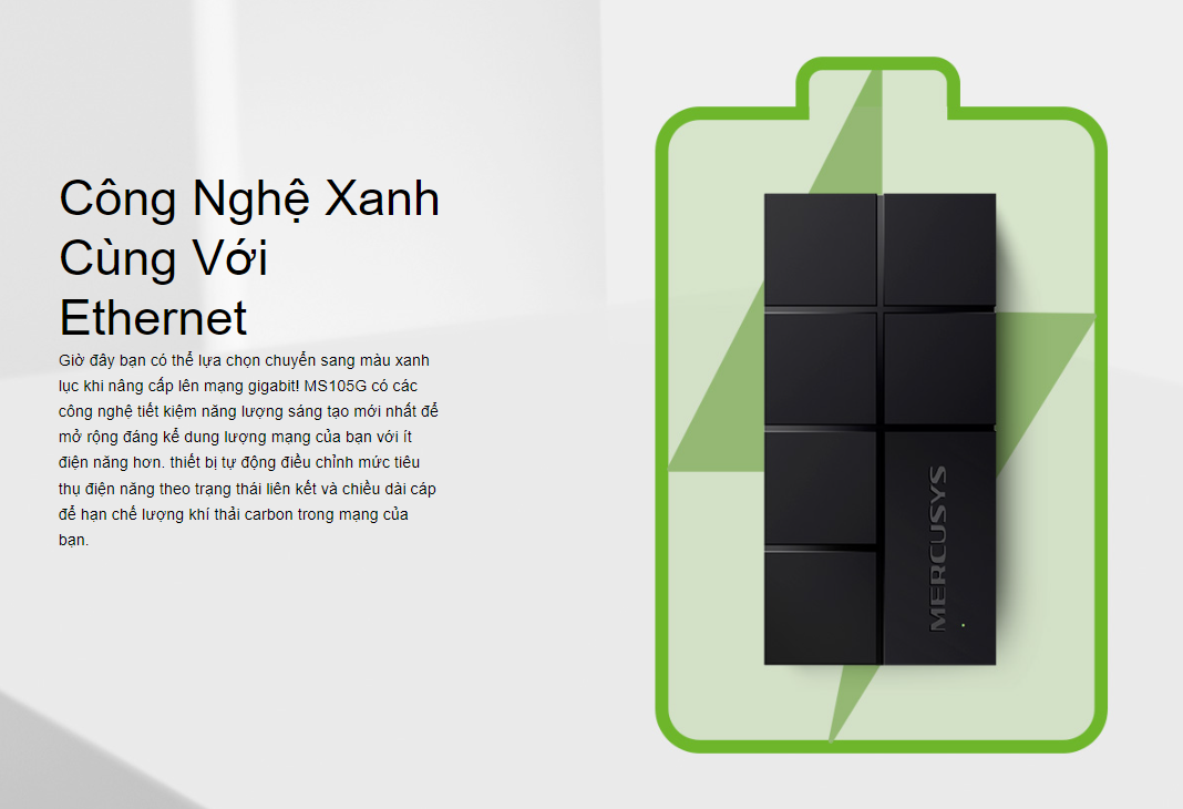 8 cổng RJ45 10/100Mbps với kỹ thuật chiếm quyền điều khiển cáp (Auto-Negotiation) và hỗ trợ tính năng MDI/MDIX Công nghệ Ethernet xanh giúp tiết kiệm điện năng tiêu thụ Kiểm soát lưu lượng IEEE