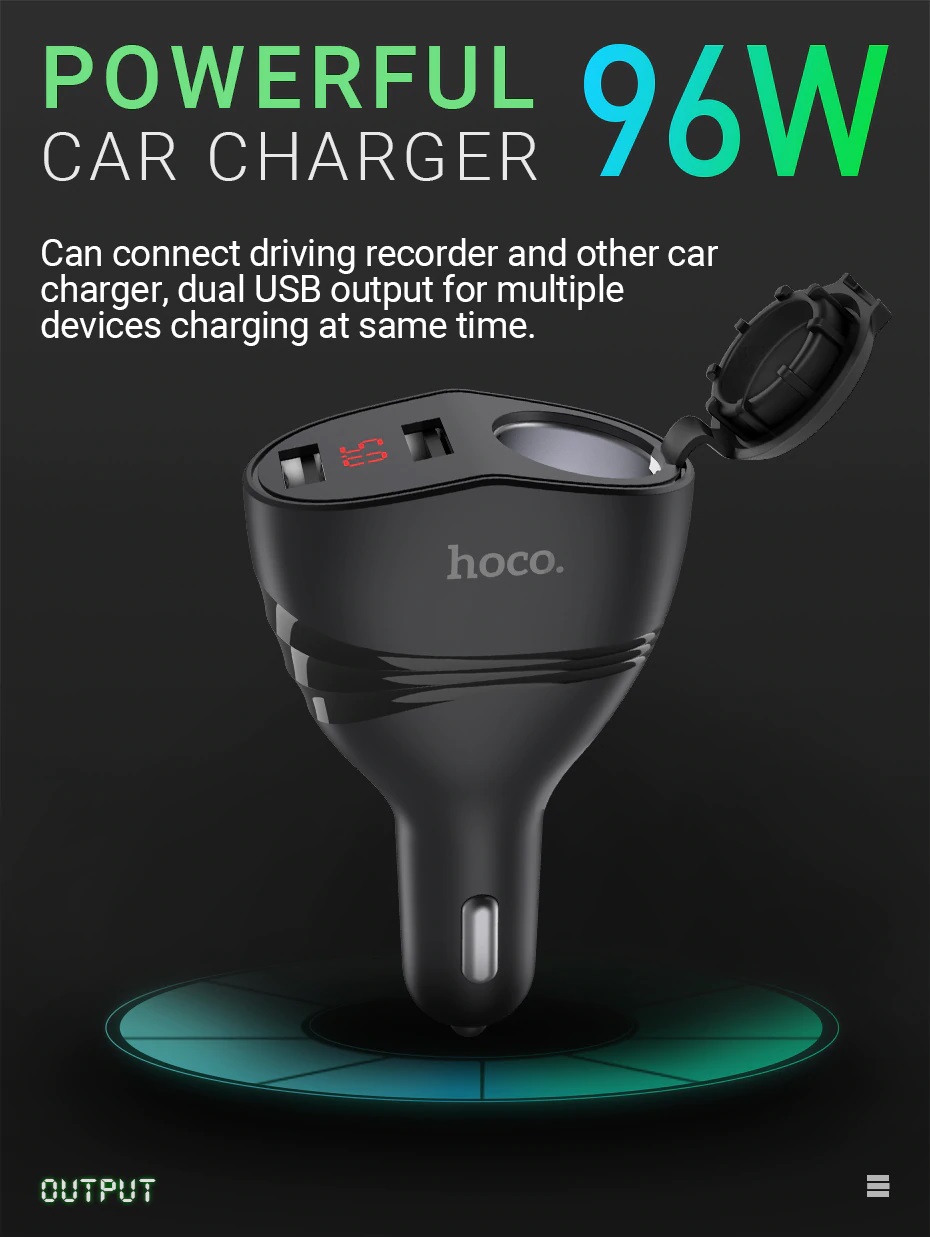 Tẩu Sạc Ô tô Đa Năng Hoco Z34 2 Cổng USB Chia Tẩu 96W Chính Hãng