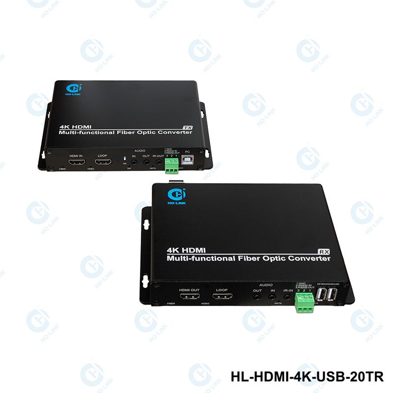 Bộ Kéo dài HDMI qua cáp quang 4K có cổng USB được thiết kế để giải quyết vấn đề chất lượng hình ảnh, biến dạng màu sắc và khả năng truyền tín hiệu HDMI qua một khoảng cách xa lên đến 20KM. HL-HDMI-4K-USB-20T/R hỗ trợ cổng cắm USB cho bàn phím và chuột giúp bạn có thể vừa xem hình ảnh vừa điều khiển trực tiếp . Sản phẩm thiết bị chuyển đổi HDMI sang quang HOLINK được nhập khẩu bởi công ty giải pháp viễn thông Thiên Tân được thiết kế để hiển thị màn hình phẳng và hiển thị cho quảng cáo màn hình lớn. kèm theo âm thanh và video HDMI chất lượng cao. Thiết bị sử dụng module SFP LC riêng biệt để truyền hình ảnh với băng thông truyền lên đến 10G.