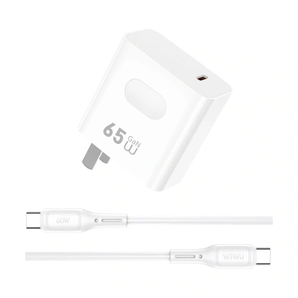 ✨Bộ cóc củ dây sạc nhanh 65W USB C kèm dây Type C to Type C 60W PPS chống cháy hiệu WIWU GAN ESSEN Fast Charger cho iPhone 6 15 14 13 12 11 ProMax cho iPad Pro Air 10.2 9.7 10.5 11 12.9 13 inch S24 S25 cho Macbook cho Laptop Find Flip Fold - Hàng nhập khẩu