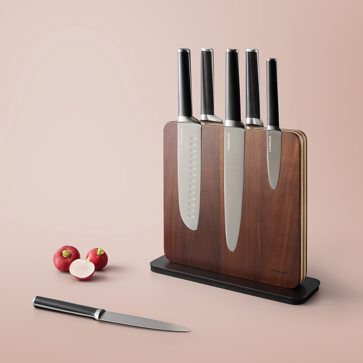 - Bộ Dao Nhà Bếp 6 Món Lock&Lock CKK101S01 - Chất liệu: - Thân dao : Crom (3Cr13 không rỉ) - Tay cầm nhựa PP Bộ gồm: - 1 dao bếp bản to - lưỡi