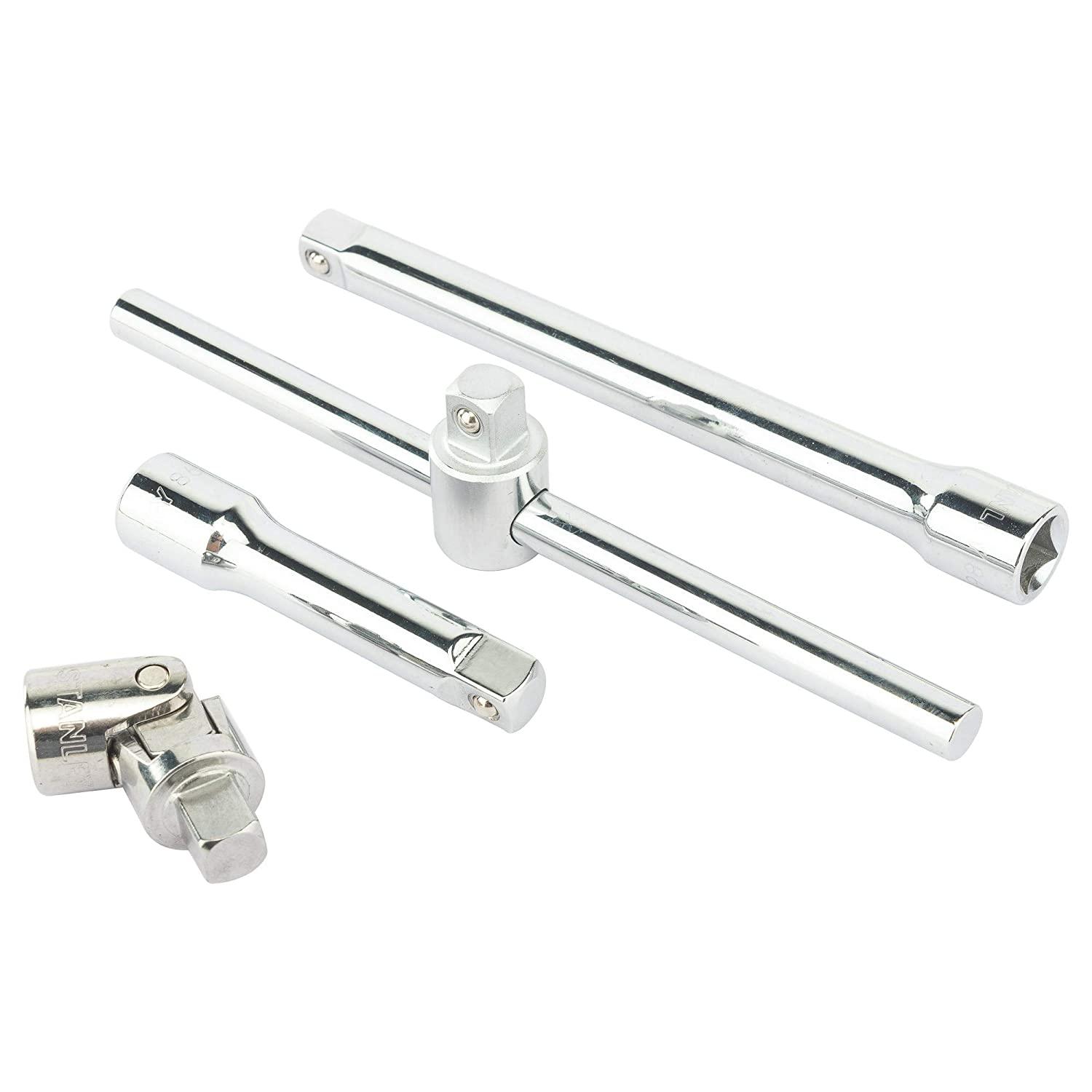 Bộ 17 ổ cắm 1/2" Bao gồm: 12 ổ cắm Dr 1/2": 10-11-12-13-14-15-16-17-18-19-21-24mm 1 tay cầm ratchet tháo lắp nhanh 1/2" 72T 2 thanh nối dài Dr 1/2": 5"(125mm) & 10"(250mm) 1 ổ cắm bugi: