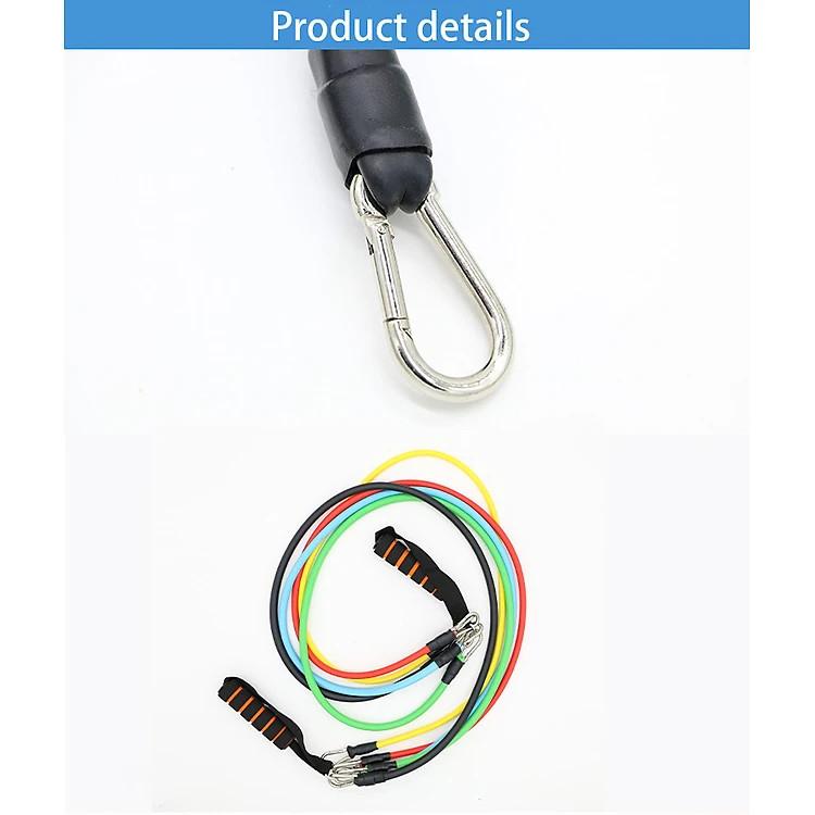 Bộ dây đàn hồi tập Gym 11 chi tiết chính hãng Rexchi Trọng lượng kéo của 5 dây là 100LB tương đương 45,2Kg Móc sắt hiện đại giúp bạn dễ dàng nâng hoặc giảm mức