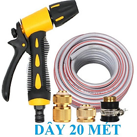 ✨Bộ dây vòi xịt nước rửa xe, tưới cây . tăng áp 3 lần, loại 20m 206236 đầu đồng, cút đồng