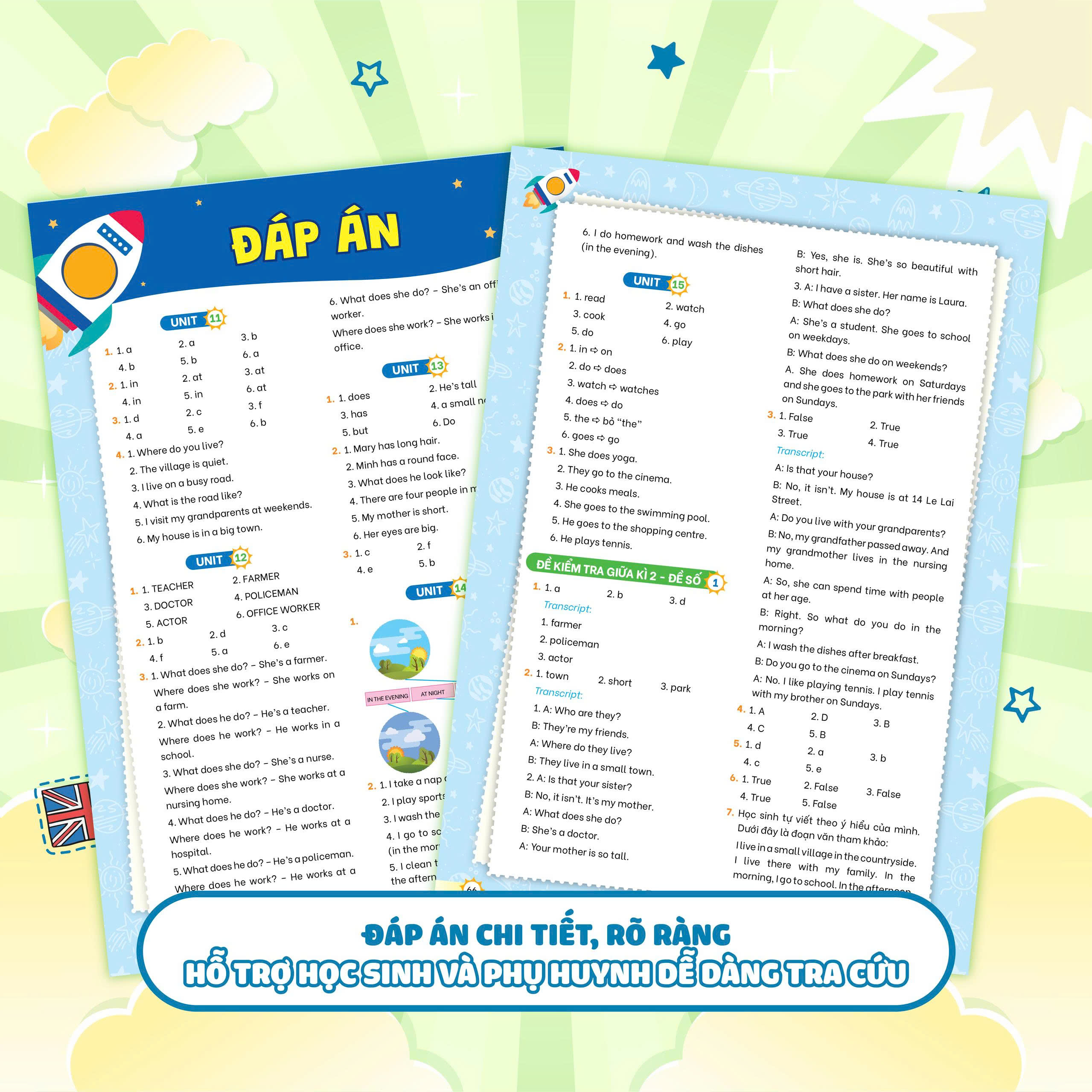 Phần đáp án chi tiết, dễ tra cứu: Ở cuối mỗi tập, phần đáp án rõ ràng, chính xác giúp người học kiểm tra kết quả sau mỗi bài làm, hỗ trợ hiệu quả cho việc tự học và ôn luyện tại nhà.