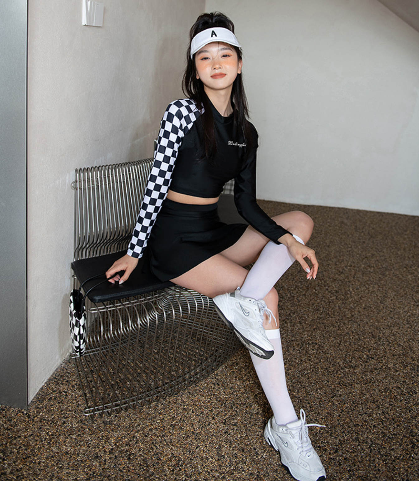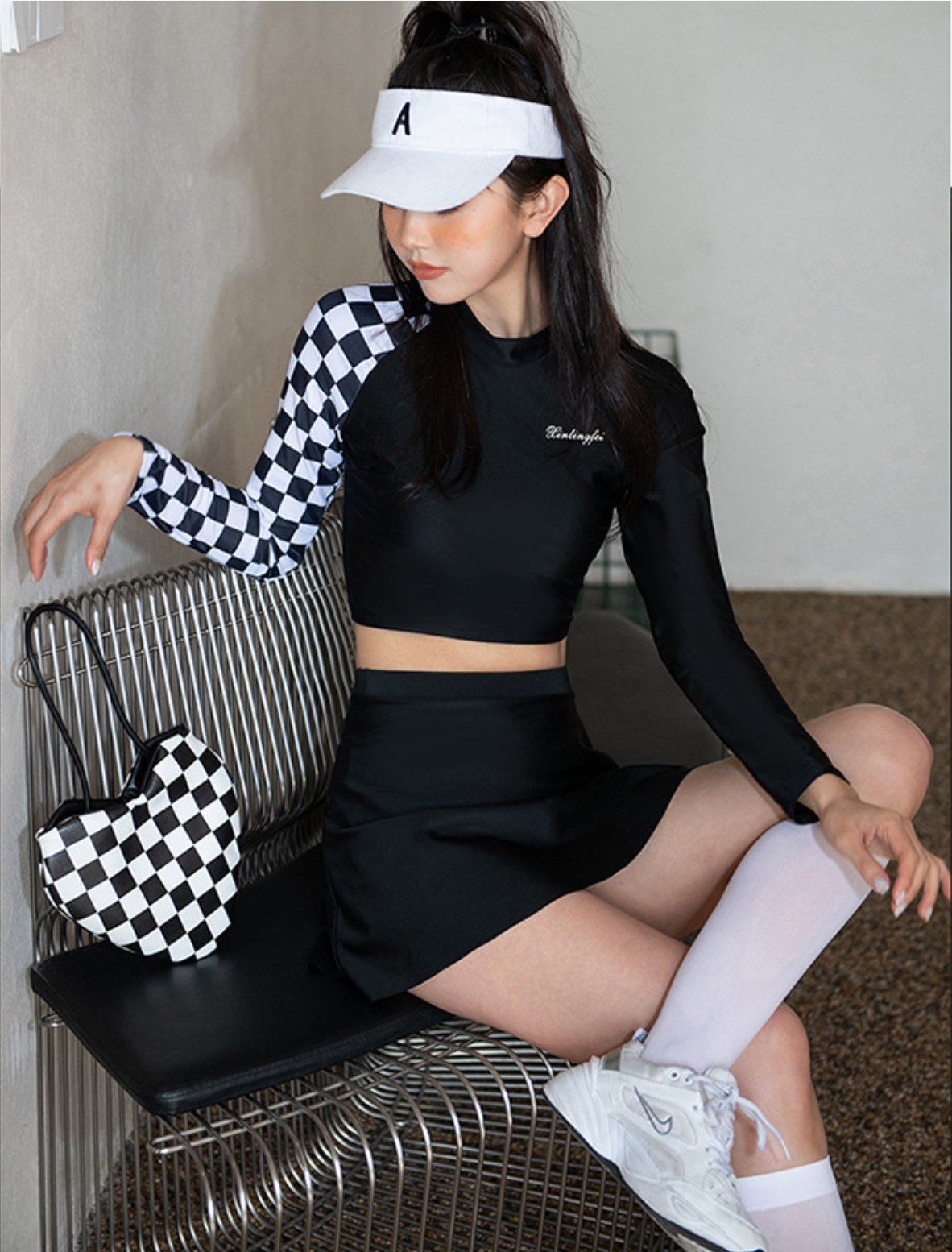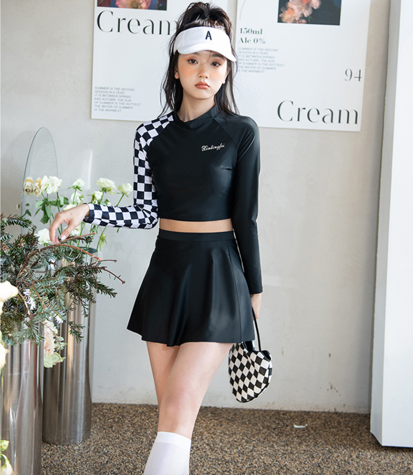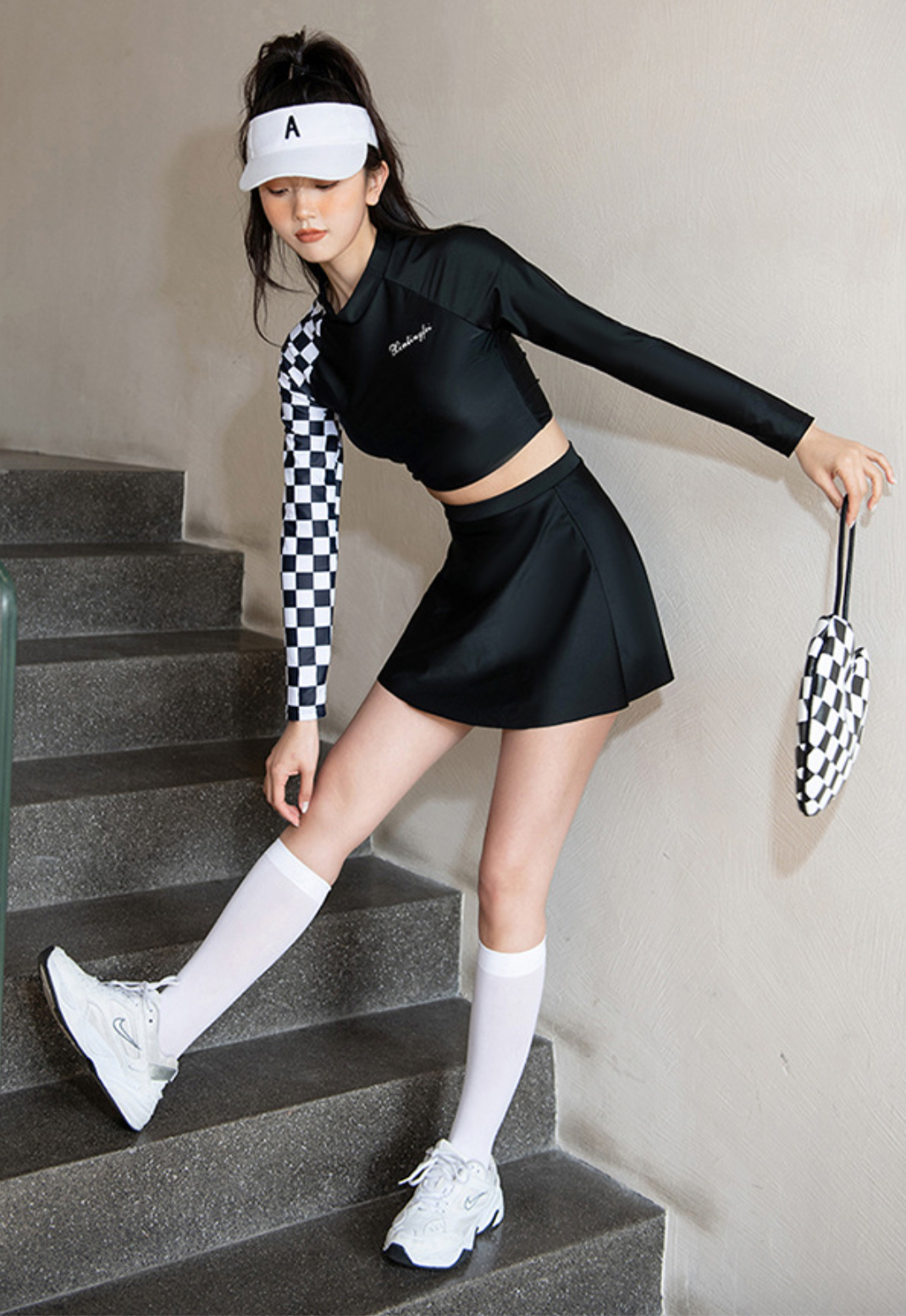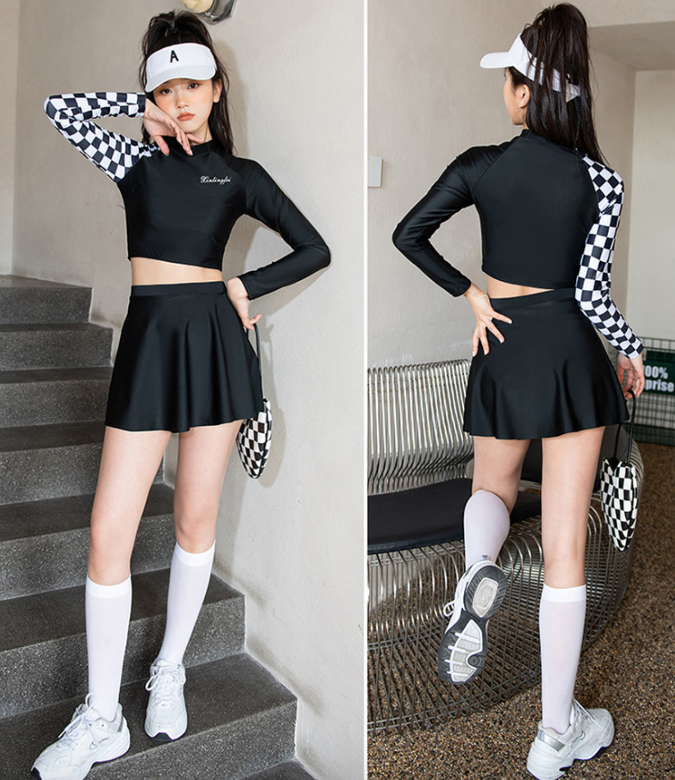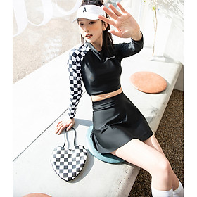 - Set gồm: áo croptop , váy (có quần đùi bên trong)