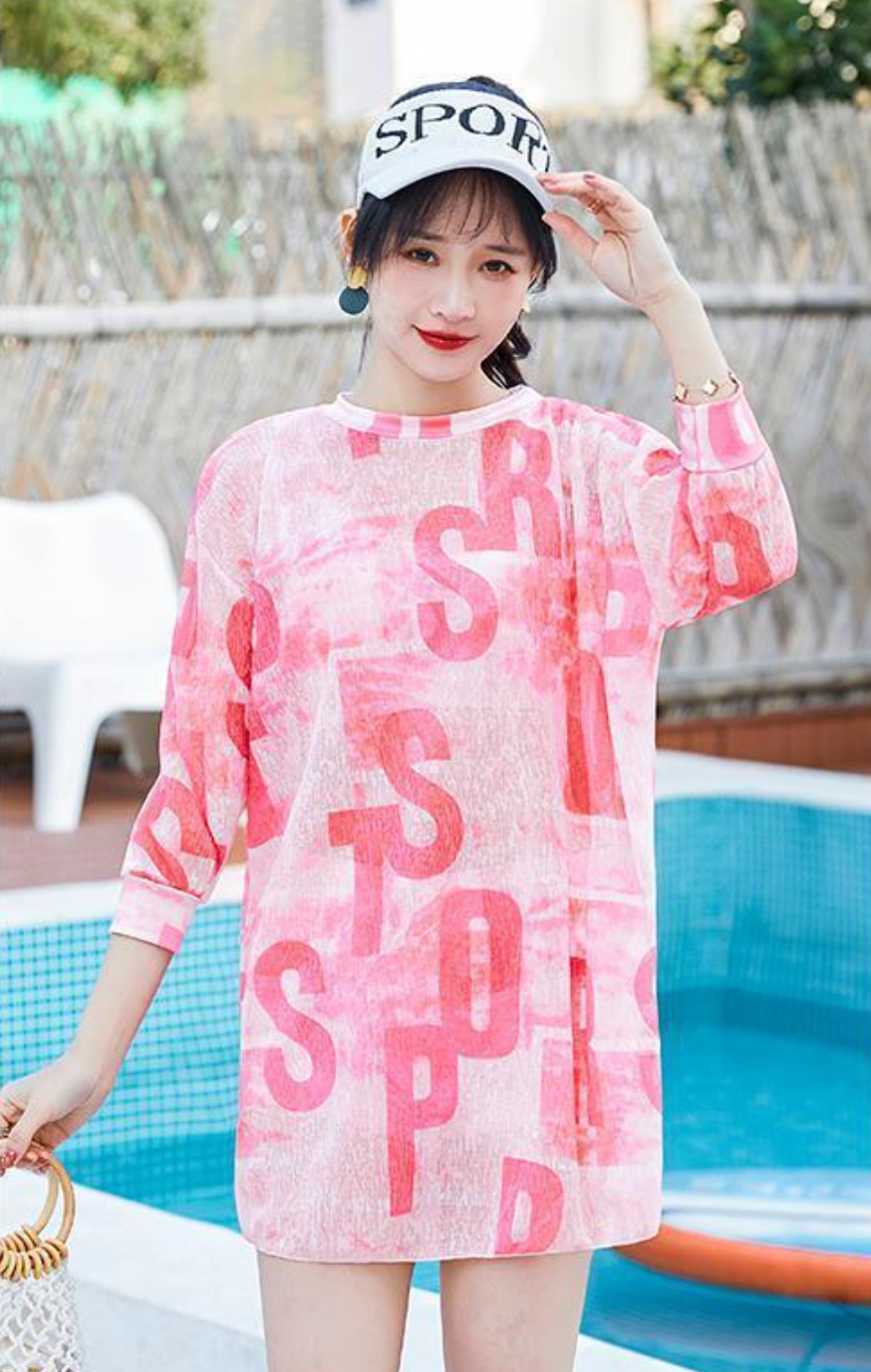 - Mẫu đồ bơi mới nhất cho các bạn nữ thích sự trẻ trung kín đáo mà vẫn thu hút khi đi biển, đi bơi. - Áo dáng ngắn tay phối hoạ tiết trẻ khoẻ,