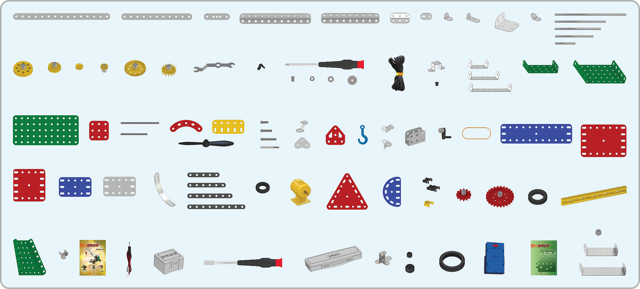 Bao gồm các dụng cụ, phụ phẩm và sách hướng dẫn.