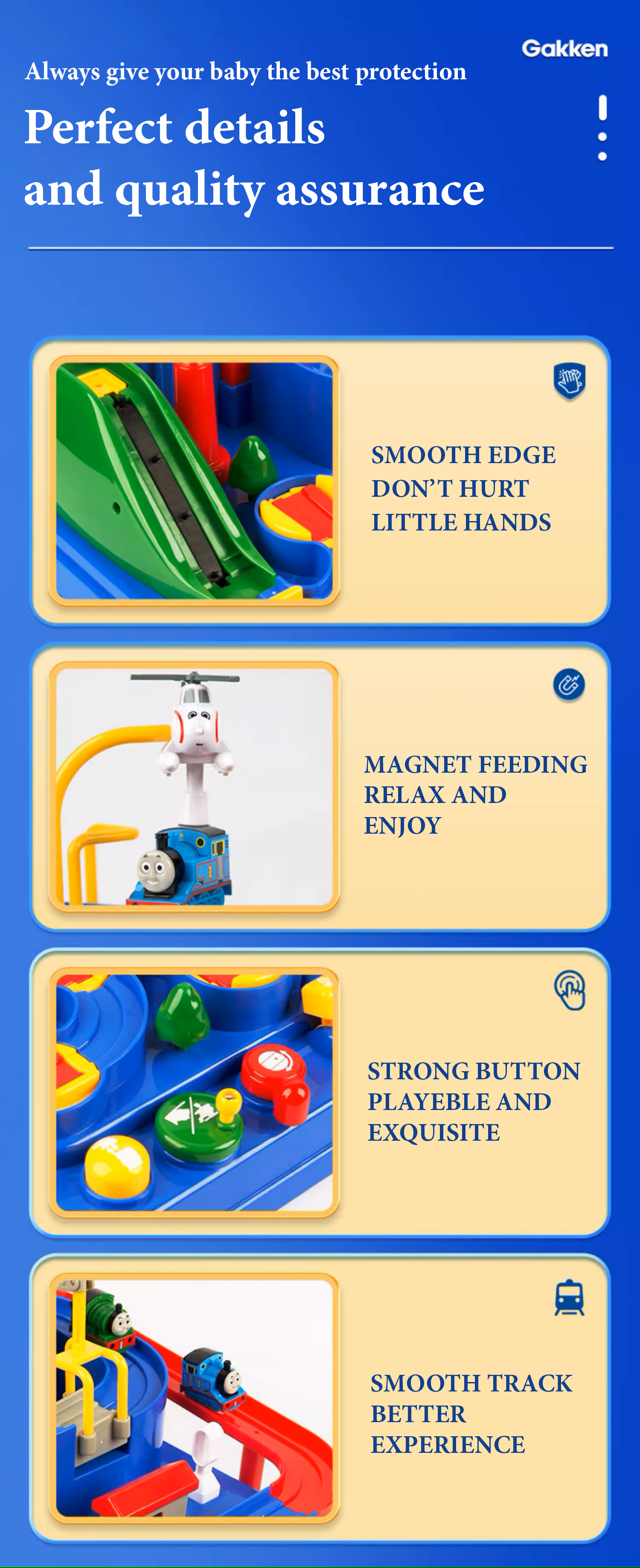Bộ đồ chơi xe lửa Thomas - Vùng đất phiêu lưu Thương hiệu: Gakken Hongkong Xuất xứ thương hiệu: Nhật Bản Kích thước: 36*20*36 cm Chất liệu: Nhựa ABS, PP Độ tuổi: Từ 3 tuổi