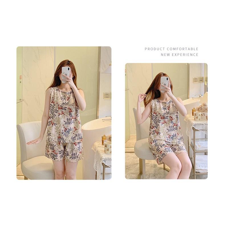 ✨Bộ đồ mặc ở nhà dành cho nữ, bộ áo ba lỗ và quần đùi vải lanh mềm mát, họa tiết trẻ trung, size từ 45 - 75 kg (kiểu 1)