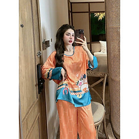 ✨Bộ đồ ngủ lụa tay lở quần dài B197 hoa tiết gấu cam dễ thương