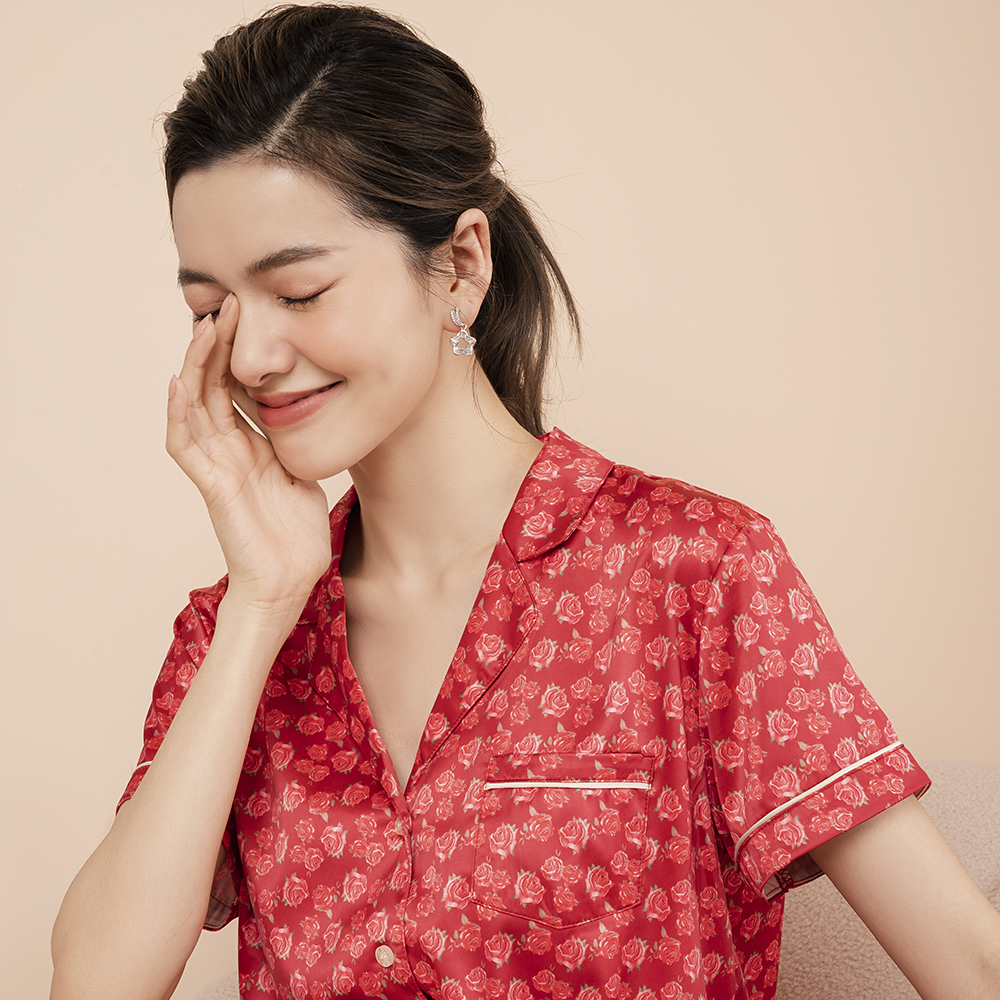 Bộ mặc nhà Lụa Satin Nhật ngắn tay - Hoạ tiết TL BD303