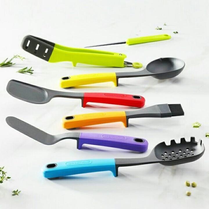 Đem lại sự tiện lợi gọn gàng: Bộ dụng cụ thiết kế có lỗ treo, cất giữ dễ dàng, tiện dụng khi cần. Giúp bạn tiết kiệm và làm sạch không gian bếp bừa bộn.