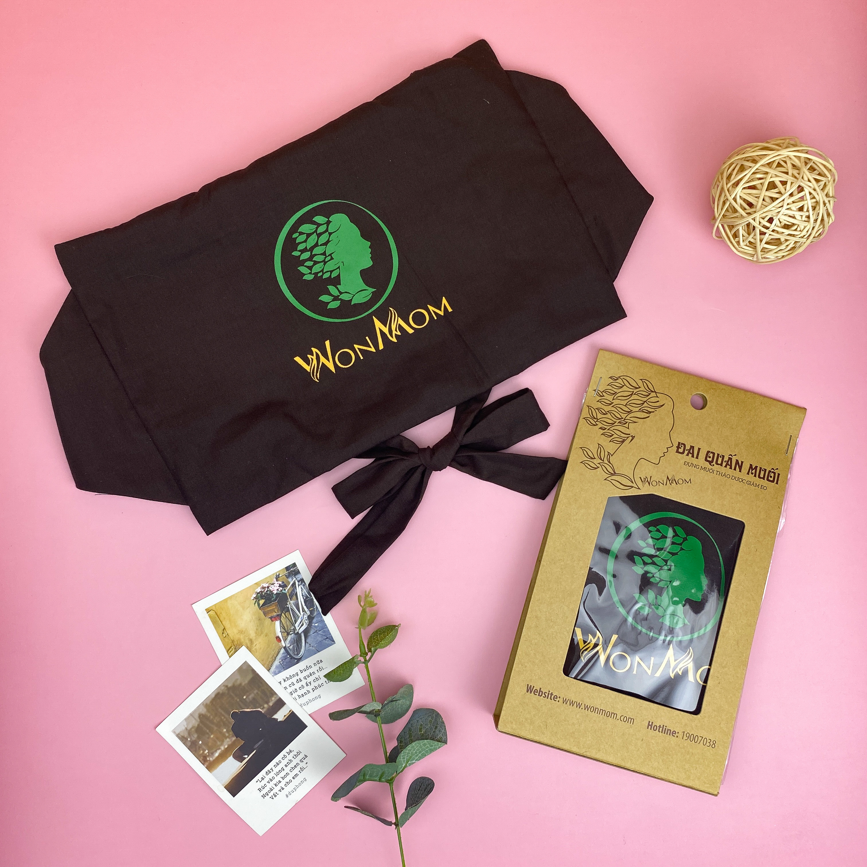 - Giới thiệu: Bộ giảm eo sau sinh Wonmom là 1 trong số những sản phẩm được yêu thích nhất của các mẹ bỉm sữa. Bộ sản phẩm bao gồm: 4 hộp muối thảo dược giảm eo, 1 chai dầu gừng thiên nhiên đánh tan mỡ, 1 đai quấn muối và 1 gen nịt bụng.