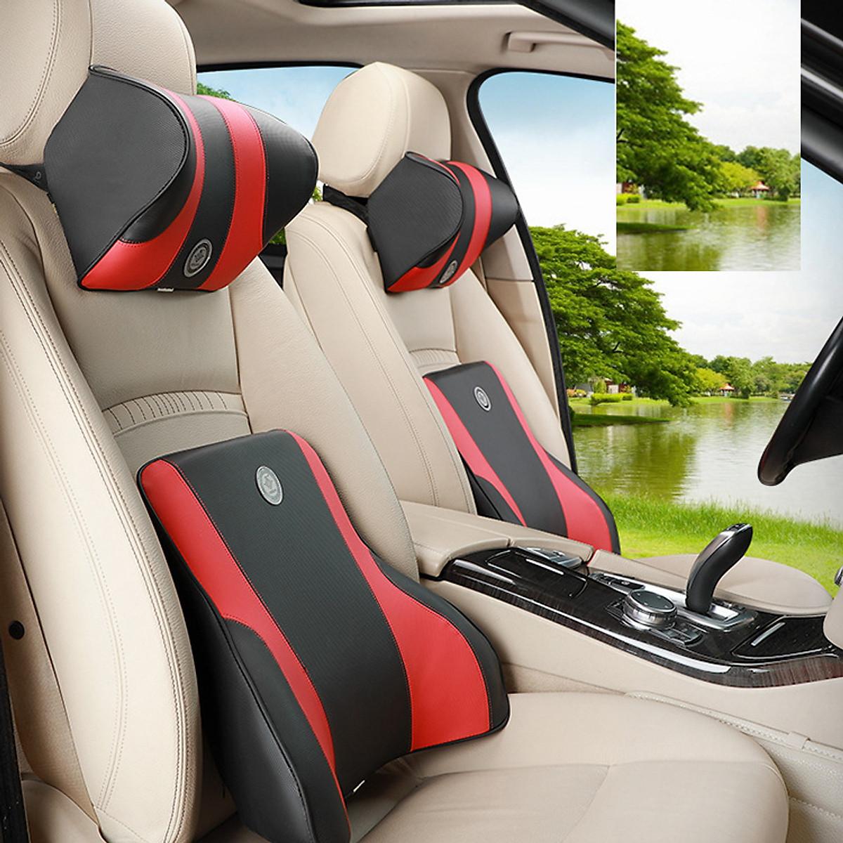 Gối tựa đầu ô tô cao su non bọc da G003 màu đen đỏ với nguyên liệu từ cao su thiên nhiên mềm xốp tạo cảm giác êm ái mềm mại cho người dùng giúp lưu