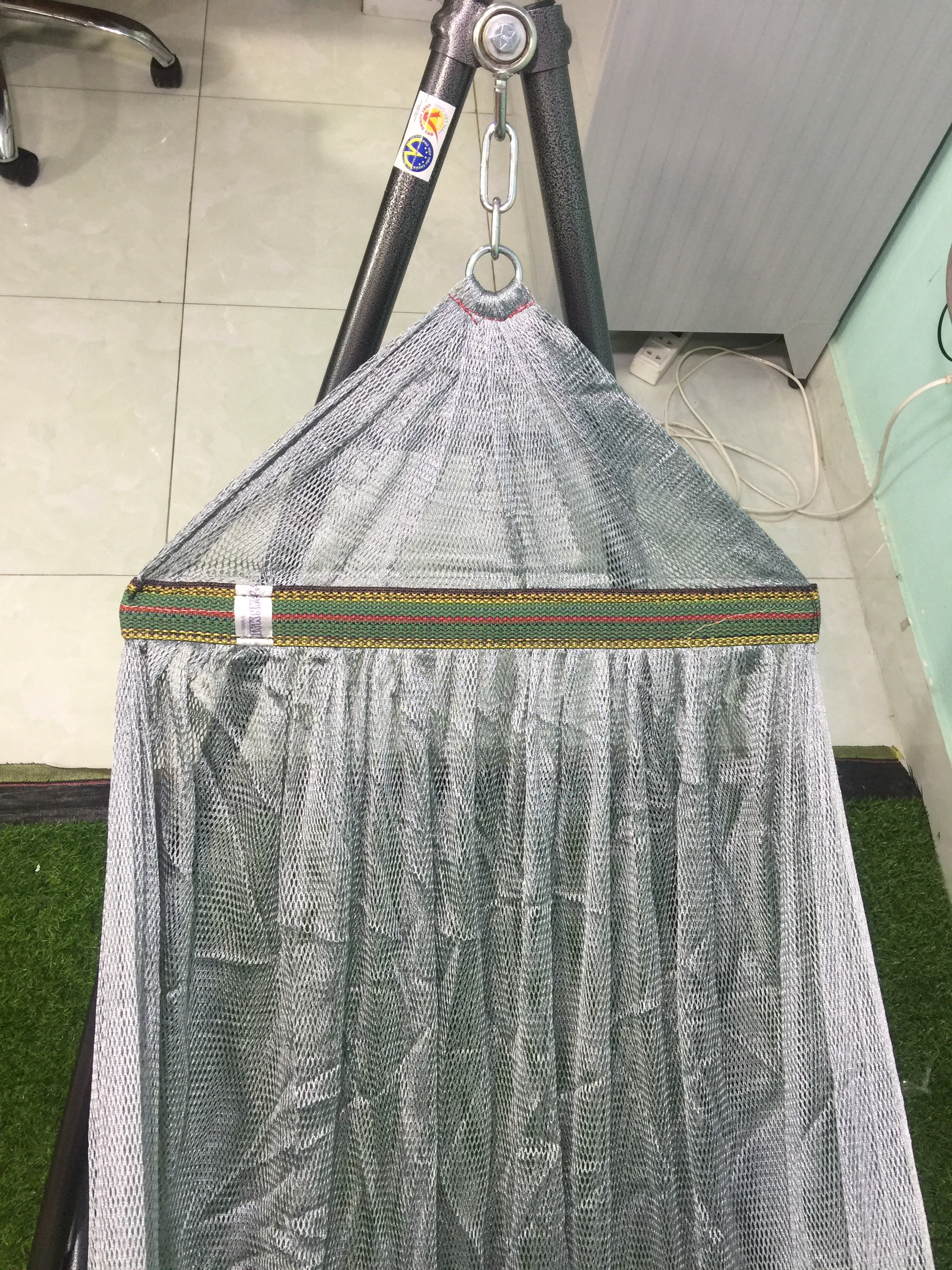 - Võng lưới: dệt từ sợi 100% polyester, đã căng kim ít dãn, dày, khổ rộng 1.2m, cán thép dài 50 cm (Màu ngẫu nhiên: ngọc, xám,cam...)