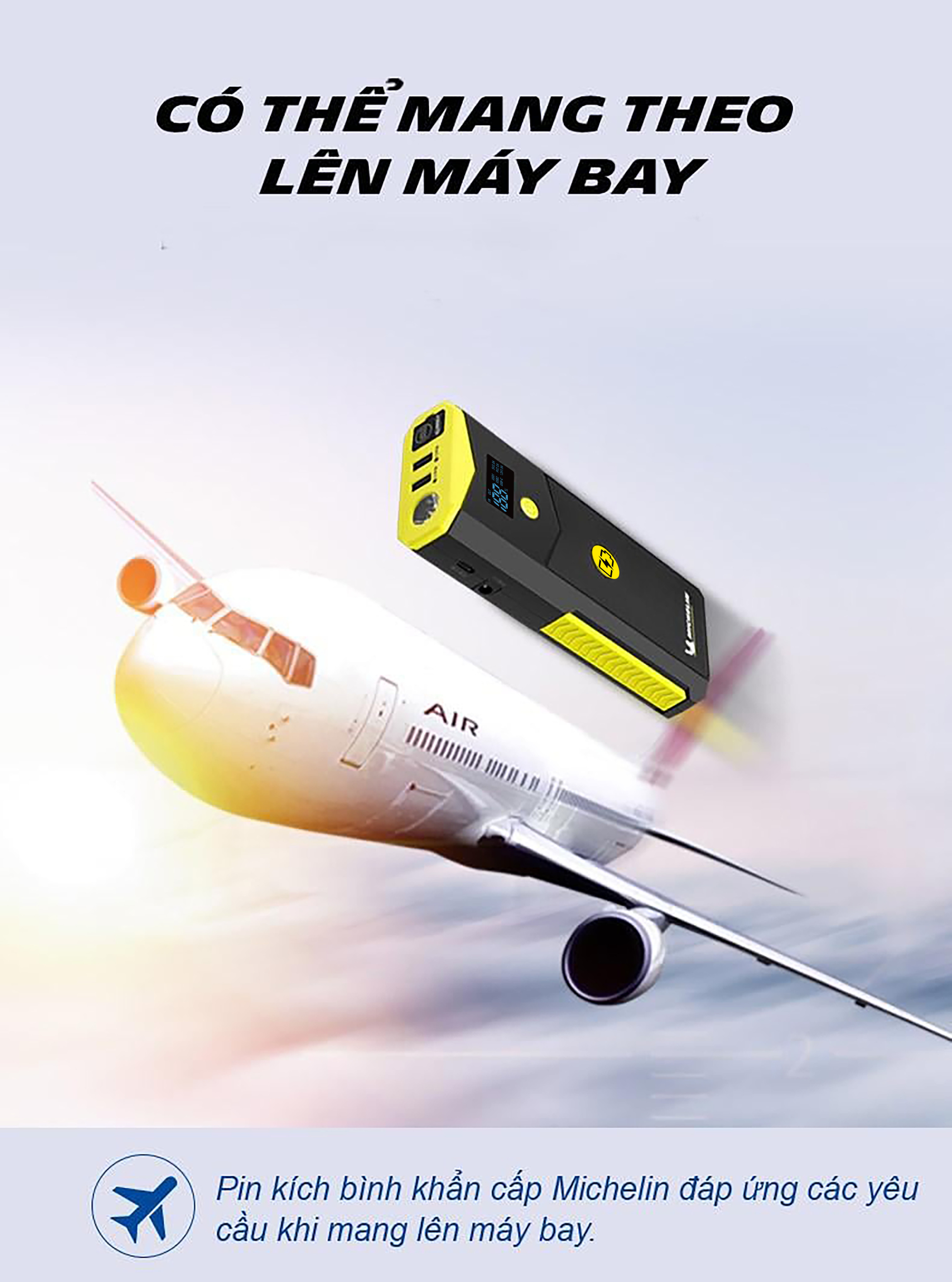 Bộ kích bình ô tô 750A - 1500A chuyên dụng kiêm sạc dự phòng không dây 12000 mAh Michelin 4163ML