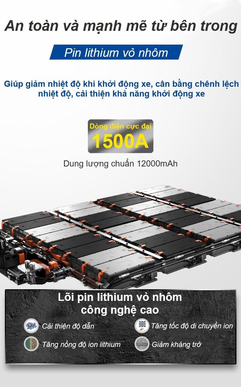 Giới thiệu Bộ kích bình ô tô 750A - 1500A chuyên dụng có đèn pin Michelin 4165ML Bộ kích bình ô tô 750A - 1500A chuyên dụng có đèn pin Michelin 4165ML giúp cung cấp nguồn điện khẩn cấp, kích điện ắc quy giúp xe vận hành nhanh chóng trong các trường hợp rủi ro do xe không tự khởi động được. Ngoài ra, Bộ kích bình ô tô 750A - 1500A chuyên dụng có đèn pin Michelin 4165ML kèm đèn pin LED siêu sáng mang đến sự an tâm cho bạn ở bất cứ nơi đâu. Thông tin sản phẩm Tên sản phẩm (VN): Bộ kích bình ô tô 750A - 1500A chuyên dụng có đèn pin Michelin 4165ML Mã sản phẩm: 4165ML Công dụng: Kích bình ô tô, đèn led Thương hiệu: Michelin Xuất xứ thương hiệu: Pháp Sản xuất tại: Trung Quốc Bảo hành: 6 tháng Đầu ra USB 1: 5V / 9V / 12V Đầu ra USB 2: 5V / 2.1A Dung lượng pin: 12000 mAh Kích thước: 192 x 88 x 38 (mm) Dòng điện: 750A - 1500A Bộ sản phẩm bao gồm: Bộ kích bình, cáp kích bình, cáp sạc điện thoại, sách HDSD Thông tin nổi bật Kích bình tốt trong nhiều trường hợp khẩn cấp với dòng điện đến 1500A Cáp kích bình có đèn led thể hiện dòng điện Màn hình led thể hiện dung lượng pin, sạc, Có kèm dây cáp sạc USB-C, Micro USB, USB Sử dụng đơn giản, dự phòng trong nhiều trường hợp khẩn cấp Sản phẩm đa tính năng từ kích bình đến sạc dự phòng, đèn pin Led Đèn LED tích hợp siêu sáng Sử dụng được cho xe ô tô, xe tải, xe máy, Thiết kế nhỏ gọn tinh tế và sang trọng, có hợp đựng cao cấp