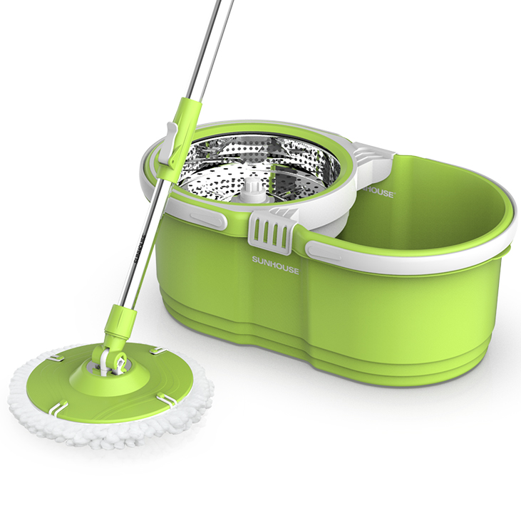 Bộ lau nhà là vật dụng cần thiết cho mỗi gia đình. Sản phẩm Bộ lau nhà xoay 360 độ SUNHOUSE KS-CL350PO bao gồm một thùng giặt có chứa lồng vắt và 1 cây lau. Với điểm nhấn