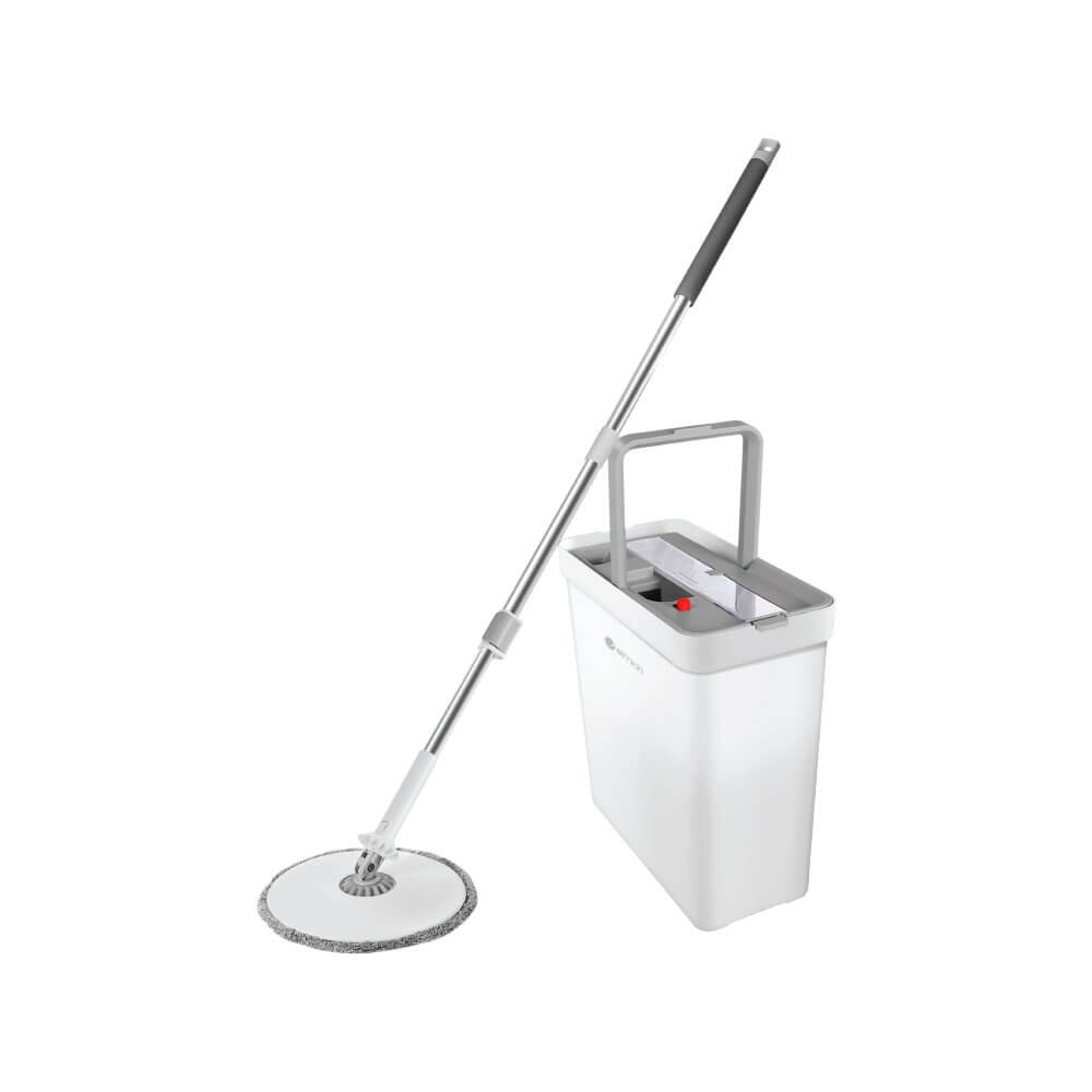 - Thương hiệu: MyJae - Màu sắc: Trắng, Xám - Chất liệu: Thép không gỉ, nhựa, polyester - Kích htước: Chiều dài cây lau: 123cm, Bông lau: 33,5 x 12,5cm, Thùng lau: 41 x 26 x 22