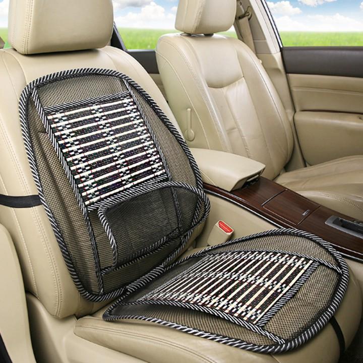 Bộ lót ghế tựa lưng ô tô cao cấp Thiết kế sang trọng vừa vặn cho từng ghế, phần tiếp xúc ngồi và tựa lưng được đan từ các thanh tre nhỏ đường chỉ đen
