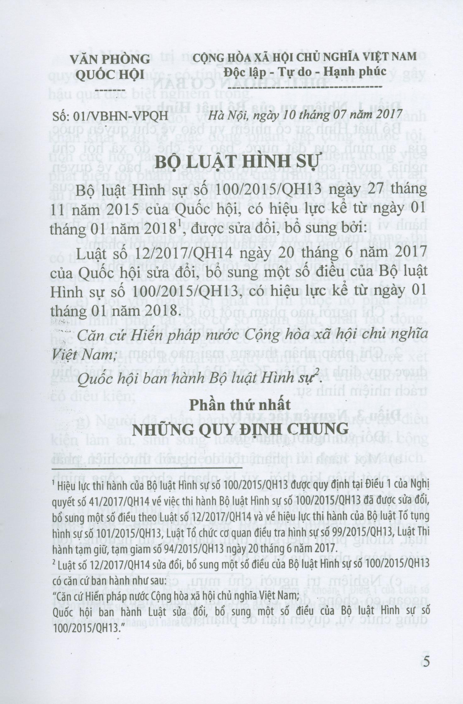 Bộ Luật Hình Sự Năm 2015 (Được Sửa Đổi, Bổ Sung Năm 2017) (DH) Ngày 20 tháng 06 năm 2017, Quốc hội ban hành Luật số 12/2017/QH14 sửa đổi, bổ sung một số điều