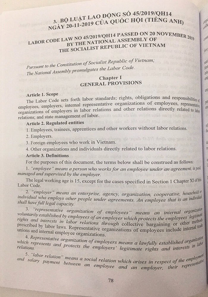 “BỘ LUẬT LAO ĐỘNG – LABOR CODE (SONG NGỮ VIỆT – ANH) mới nhất